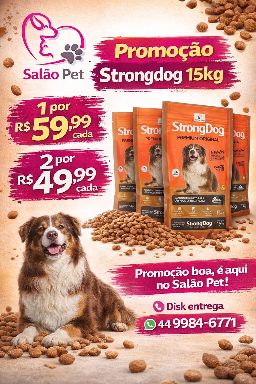 A ração StrongDog Premium 15kg é uma ótima opção para manter seu cão adulto bem alimentado no dia a dia! Com 18% de proteína bruta. Contém Ômega 3 e 6 para a pele e pelos, prebióticos para digestão e extrato de Yucca para redução do odor das fezes.