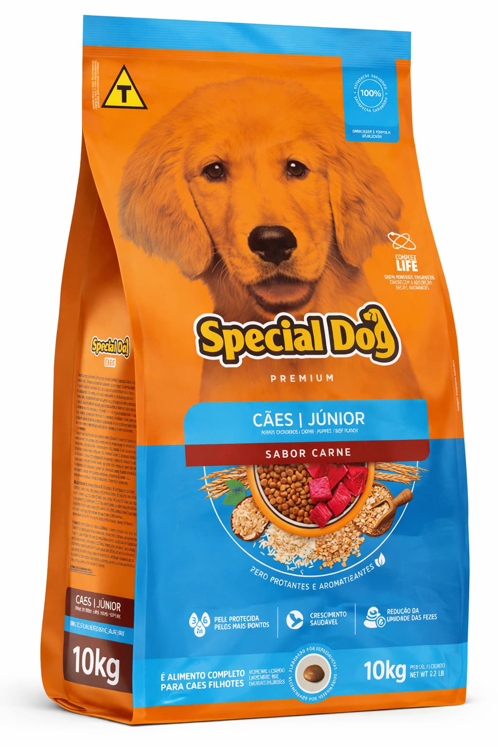 A linha Special Dog Junior é voltada para cães filhotes, oferendo diferentes opções de rações secas com foco em crescimento saudável e desenvolvimento cerebral. No mercado brasileiro, ela é classificada majoritariamente como uma ração Premium ou Premium Especial, dependendo da versão escolhida. É a versão clássica da linha. Contém 26% de proteína de alta qualidade, DHA para auxiliar na capacidade de aprendizagem e Extrato de Yucca para reduzir o odor das fezes. A presença de DHA (proveniente de algas ou óleo de peixe) é um diferencial importante para a fase de crescimento. Enriquecida com Ômegas 3 e 6 e Zinco Orgânico, que contribuem para uma pele protegida e pelos brilhantes. Utiliza o prebiótico MOS para maximizar a absorção de nutrientes e equilibrar a flora intestinal. É frequentemente citada por especialistas e tutores como uma das opções mais acessíveis dentro do segmento Premium, oferecendo bons níveis nutricionais por um preço competitivo.