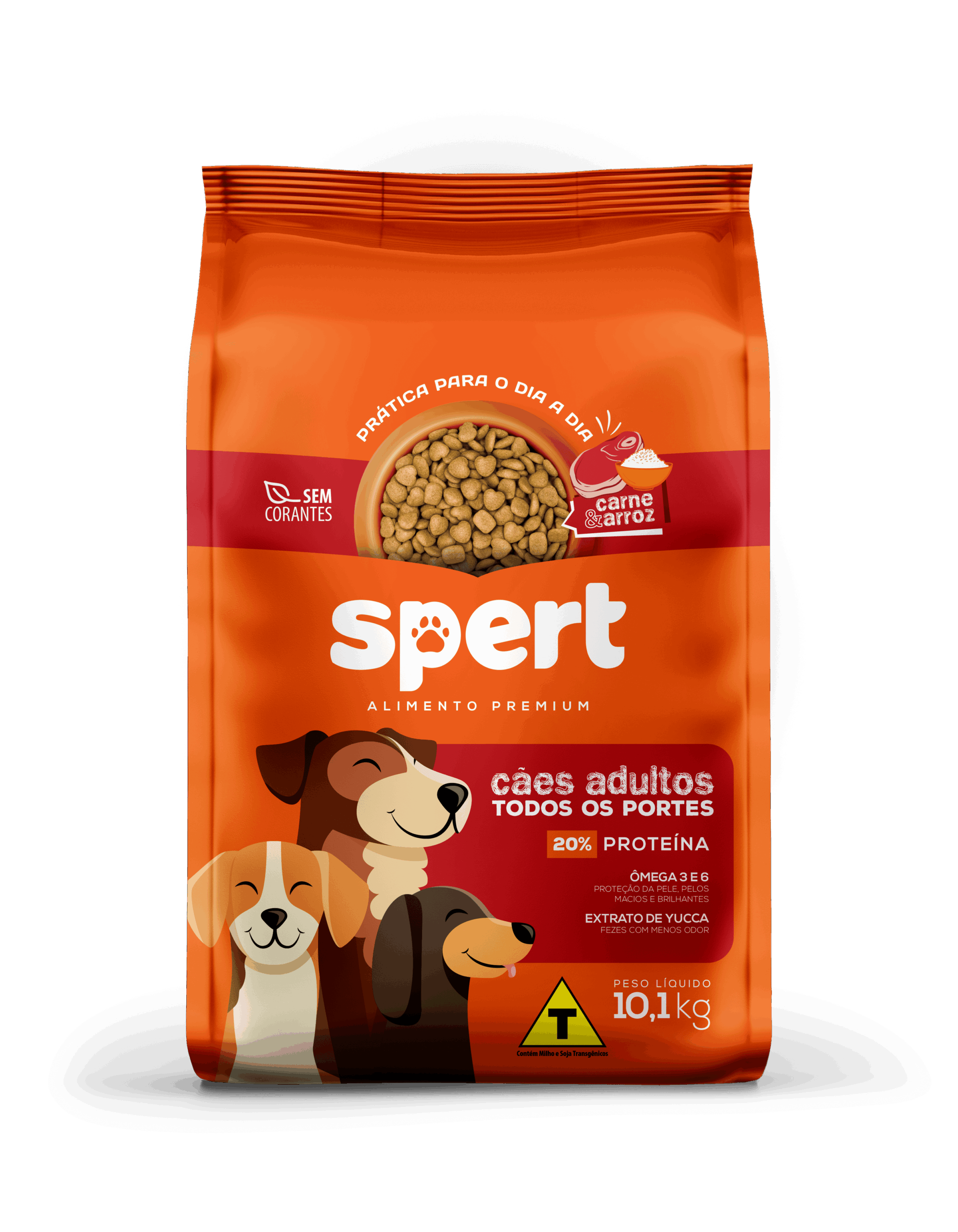 A ração Spert Adultos Todos os Portes com 20% de proteína é uma opção de categoria Premium formulada para atender cães de pequenos, médios e grandes tamanhos.